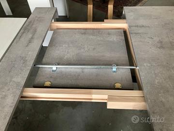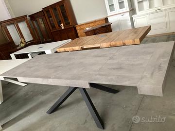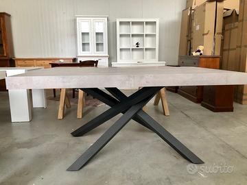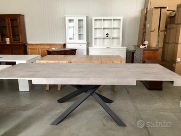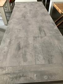 PROPONIAMO UN BELLISSIMO TAVOLO 180x100 CON 2 ALLUNGHE DA CM. 50, FINITURA BETON, BASAMENTO IN METALLO.