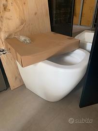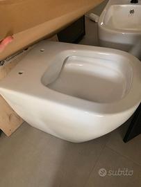 WC filomuro rimless con sedile softclose + REGALO WC in ceramica uguale con piccola crepa senza seduta.