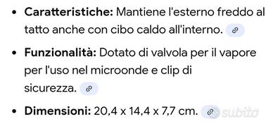 Contenitore NUOVO senza confezione originale per il pranzo Nutrifresh, pratico e funzionale. - Design Cool touch. - Adatto al microonde con steam vent. - Chiusura ermetica secure clip lid. - A prova di perdite leak proof. - Dimensioni: 20.4 x 14.4 x 7.7cm. - Capacità: 800ml / 27 fl oz.