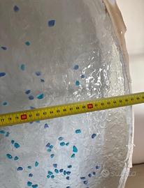 Il vetro presenta una decorazione integrata con inclusioni cromatiche blu, di forte impatto estetico, ed è un pezzo unico non replicabile.