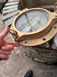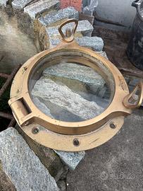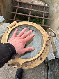 Vendesi splendido oblò nautico originale in ottone pesante, pezzo autentico di grande fascino e qualità costruttiva. Ideale come complemento d'arredo di lusso, per progetti di interior design (specchi, finestre interne) o per il restauro di imbarcazioni.