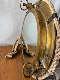 Non si tratta di un oggetto decorativo moderno in stile marinaro, ma di un vero elemento di architettura navale proveniente dall’epoca dei grandi transatlantici.
