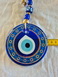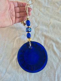 Splendido ciondolo portafortuna proveniente dalla Turchia. Un vero e proprio talismano. In pasta di vetro, raffigura l'occhio di Allah
