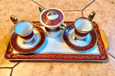 •SET CAFFÈ Lomoges Sevres porcellana dipinta (2tazzine,zuccheriera,vassoio) 33cm lungh 16alt