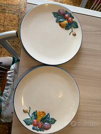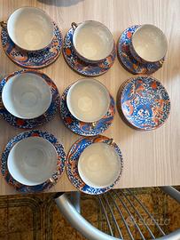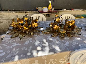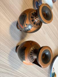 Vendo due vasi etruschi completamente decorati a mano , servizio da the francese e due piatti da parete, due lampadari decorati in foglia oro