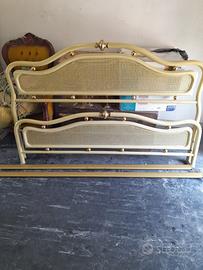 Si vendono come in foto una poltrona di velluto e legno, un letto ottone e vimini e due lumi di ottone e cristallo da comodino. Ritiro a carico dell’acquirente
