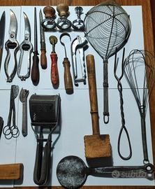 lotto di oggetti vintage da cucina e macelleria condizioni come da foto cedo a 150 euro più spedizione. Formula visto e piaciuto