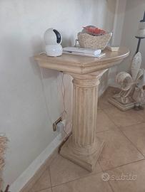 - Colonna piedistallo in stile classico,con base, in polvere di marmo effetto travertino, utilizzata come base per oggetti decorativi.