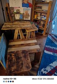 vendo , elementi d'arredo quali , tavolino, sgabelli,lampade ,realizzati a mano con materiali di recupero, prevalentemente pallet,si tratta di pezzi unici ,non in serie e con tecniche di rivestimento differenti tra loro.Per maggiori dettagli ,chiedete pure.