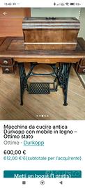 1- macchina da cucire marchio Dürkopp in legno massello finemente intarsiato con struttura in ghisa lavorata, perfettamente funzionante.