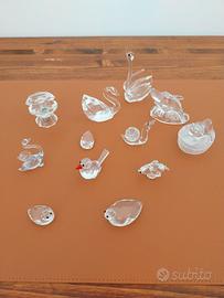 Vendo tutti insieme questi pezzi da collezione in vetro, tra cui molti animali