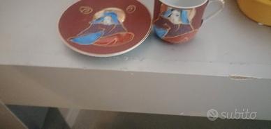 6 tazzine caffè cinesi, baule con chiavi, i piedi sono avvitati si possono togliere, mestoli alluminio, angoliera tirolese