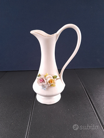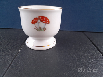 Vendo 2 piccole caraffe in ceramica bianca , una con una decorazione in tiluevo , e un piccolo porta uovo con due decorazioni differenti e il marchio Thuringia. La caraffa più grande è alta 12 cm.