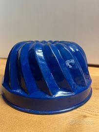 assortimento di oggetti da collezione in smalto blu, tra cui una brocca, bacinelle e stampo per dolci.