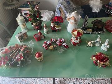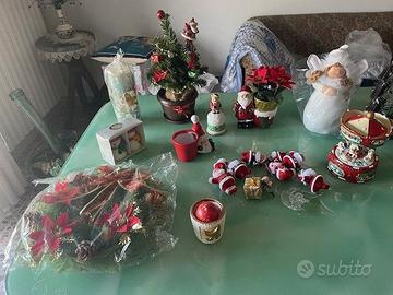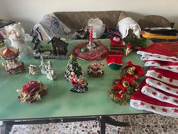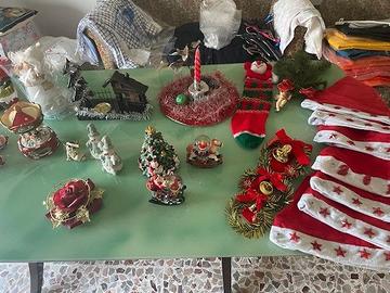 Vendo tantissimi oggetti natalizi, due carillon stupendi, uno a forma di giostra e l'altro a forma di albero di Natale, angelo con ali che si illuminano, corona da appendere alla porta, 8 Babbo Natale da appendere all'albero, cappelli di Natale che si illuminano, due sfere di neve a forma di cavallo a dondolo e a forma di slitta di Babbo Natale, vasetti natalizi con stella di Natale, etc. Ritiro in loco.