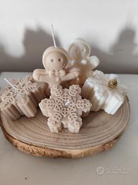 Fiocchi di neve e omini di marzapane realizzati in cera di soia Su richiesta altri colori,profumazioni e confezioni regalo