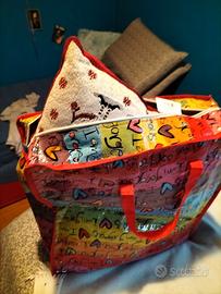 Due cuscini decorati con gnomi (dimensioni 50x30 cm ciascuno), con borsa che li contiene. Prezzo 20€