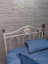 Vendo giro letto in ferro da una piazza e mezzo,compreso di rete con doghe in legno due quadri con cornice in legno ,e 4 aplique 3 uguali a due luci color bronzo e uno a 3 luci beige, vendo in blocco a 120 euro