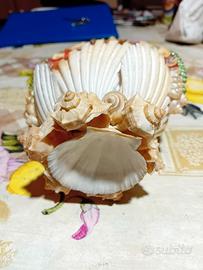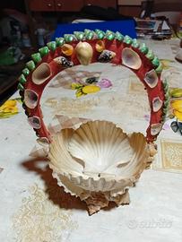 Vecchia Scatola Portagioie In Legno E Conchiglie Anni 60 cm 11x8 5 euro, cestino artigianale vintage rivestito di conchiglie altezza cm 20 3euro , 2 vasi in terracotta rivestito con conchiglie. Misure interne: diametro 12 cm, altezza 13 cm circa. 5 euro