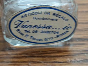 - bottiglietta con applicata decorazione in metallo e pietre colorate, marchio VANESSA...IO bomboniere Roma