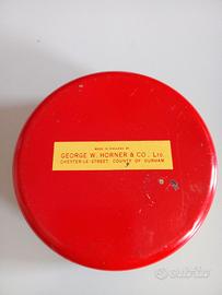 Rara e deliziosa scatola di latta circolare vintage da collezione, prodotta dalla storica azienda dolciaria inglese George W. Horner & Co. Ltd. (Chester-le-Street, Inghilterra).