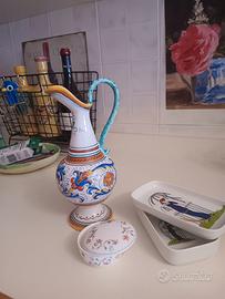 4) Deliziosa anfora/versatoio Deruta (marchiato) con i classici decori e colori (blu verde arancio). H 25cm - prezzo euro 34,00 foto 4 e 55)
