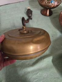 vendo 2 anfore piccole fatte in rame etrusco, uno scalda letto in rame , un lumino parete sempre in rame e due ciotole sempre in rame