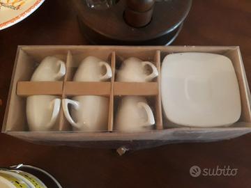 Vendo gli oggetti in foto: set di piatti per la pasta, oliera, diffusori per ambienti, salvadanaio, vasetti, set di 6 tazzine con piattini (nuovo), orologio per nascita, due piantinebonsai sintetiche... ognuno ad €5,00.