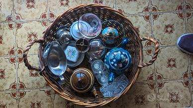 Cedo a prezzo simbolico (offerta) cesta con tutto il suo contenuto. Oggetti in ottimo stato. N.B. Manca la salsiera di metallo in basso nella prima foto che è già stata ceduta