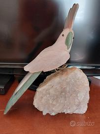 Oggetto arredo pappagallo intagliato quarzo rosa