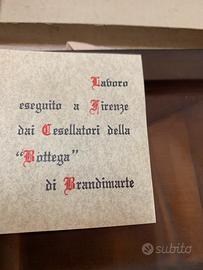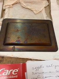 Oggetto artigianale in rame e argento usato com vassoio rendi resto o svuotatasche della nota bottega artigianal fiorentina BRANDIMARTE peso 230 grammi cm 19 per13