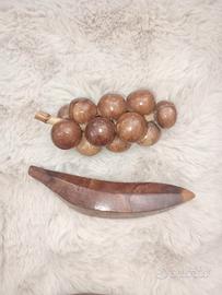 ciotola con frutta in legno...nello specifico un grappolo di uva e una banana.