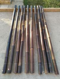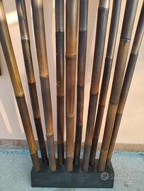 Vendo opera di design in Bamboo, utilizzato anche come separe' tra un ambiente e un'altro. Ideale per locali commerciali o stabilimenti in stile simile. Le canne di banboo sono di diametro circa 7.5/8.0 cm e sono facilmente sfilabili dal supporto. Le canne possono essere anche usate per ad esempio una staccionata. La struttura montata ha un'altezza di 2.5 mt, mentre il supporto misura 97 x 30 x H20 cm