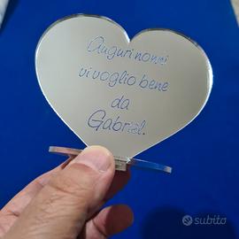 Bellissimo oggetto idea regalino a forma di cuore, perfetto come regalo per i nonni! È realizzato in acrilico trasparente a specchio, con un supporto . Ideale per qualsiasi arredamento antico moderno vintage retrò arte povera liberty