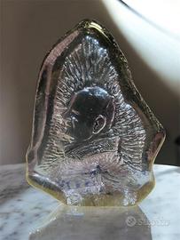 Scultura in vetro color viola che rapprese Padre Pio ideale anche come ferma carte Misura 10X13