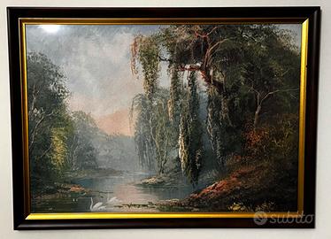 Vendo coppia oli su tela "Lago nel bosco" - Scuola romantica + cornici