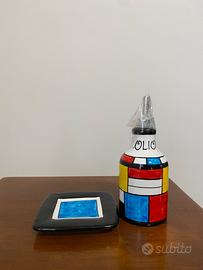 Oliera con piattino in ceramica dipinto a mano. Deruta. Nuovo.