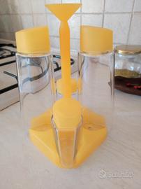 Oliera e acetiera, sale e pepe. Plastica trasparente antiurto.