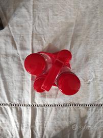 Oliera 5 pezzi (olio, aceto, sale, pepe, stuzzicadenti) in plastica colorata più vetro con versatori salvagoccia. Colore rosso. Lineauno, GIERRE. Made in Italy.