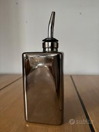 Moderna e pratica oliera in vetro cristallino soffiato con trattamento “mirroring” inalterabile che tiene l’olio al riparo dalla luce, prodotta in Italia da Luigi Bormioli in quantità estremamente limitata e quasi introvabile, ricorda volutamente nella forma l’iconica lattina dell‘OLIO SASSO. Capacita 250 cc. Dotata di beccuccio in acciaio con guarnizione in silicone, facilmente reperibile per eventuali sostituzioni ( comunque nella mia non l’ho mai dovuta sostituire)