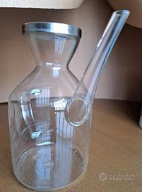 Oliera in vetro con beccuccio e tappo in acciaio con guarnizione, proveniente da San Giminiano, pressochè nuova; misure: altezza 15 cm, larghezza contenitore 8 cm, larghezza totale 18 cm; ubicazione: San Donato Milanese (MI)