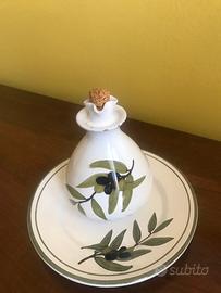 Oliera + Orcio in ceramica dipinti a mano, toscani, orcio diametro 20 cm. alto 20 cm. , oliera diametro 10 cm. alta 13 cm., ognuno con piatto