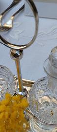 Set menage olio aceto in Sheffield inglese e bellissimo cristallo.Non può mancare su una tavola ben apparecchiata! Non spedisco ma consegno personalmente