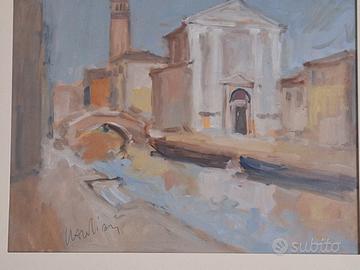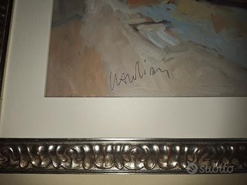 olio su legno di CANDIA ALBERTO pittore veneziano misura del solo dipinto 50x55 in bella cornice argento lavorata firma avanti e retro con titolo