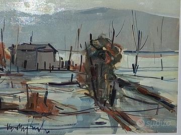 olio su tavola del maestro MARCONI CARLO MISURA DIPINTO 30X40 cornice nuova firma avanti e retro con titolo e autentica