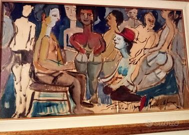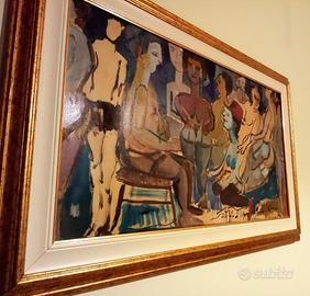 Misure cm. 68x40 esclusa la cornice che viene messa in vendita in abbinamento al quadro, nuova di zecca del costo di 50 euro, fatta su misura del dipinto. Naturalmente dipinto + cornice 200 euro.