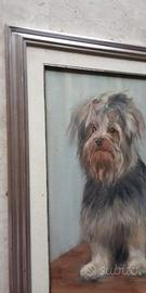 QUADRO CANE . RITRATTO DI CANE YORKSHIRE , OLIO SU TELA . CORNICE 76 X 56 CM 200 EURO