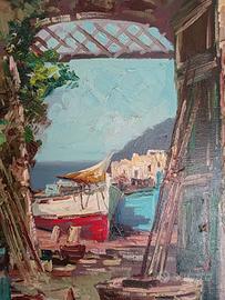 Splendido dipinto olio su tela del maestro Vincenzo Laricchia ( Napoli 1940-2017) appartenente alla grande famiglia della pittura napoletana e, probabilmente, l'ultimo maestro di quella tradizione di pittori vedutisti Dimensioni Tela 30x40 cm Cornice 47x57 Usato in ottimo stato conservativo