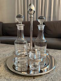OLRI Set Menage Da Tavola 5 pezzi, Vassoio Menage, Porta Olio, Porta Aceto, Porta Sale E Porta pepe in lega argentata silver plated.