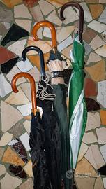 18 ottimi ombrelli classici integri, puliti, funzionanti, vari colori e materiali di impugnature, 12 automatici e 6 manuali, 60€ tutti, oppure 6€ cadauno